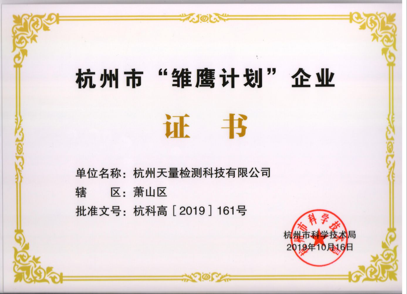 雛鷹計(jì)劃企業(yè)證書