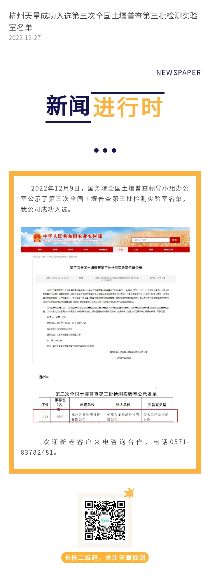 杭州天量成功入選第三次全國土壤普查第三批檢測實驗室名單